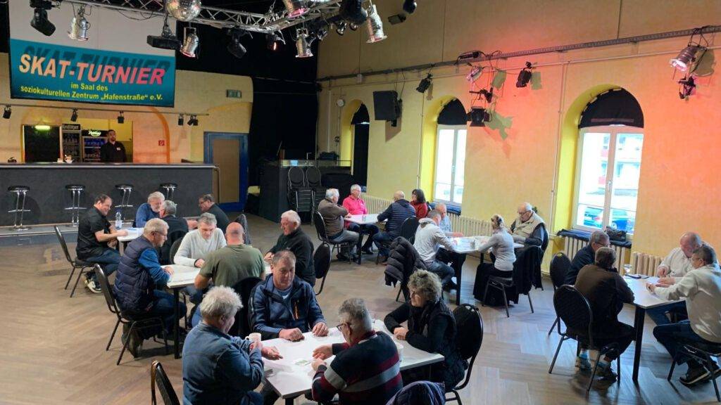 Im soziokulturellen Zentrum „Hafenstraße“ e.V. hat Skat eine besondere Rolle. Die regelmäßigen Treffen bieten eine Plattform, auf der Menschen verschiedener Generationen und Hintergründe zusammenkommen können. Hier geht es nicht nur um das Spiel selbst, sondern auch um den Austausch und das Miteinander in einer offenen und integrativen Umgebung.