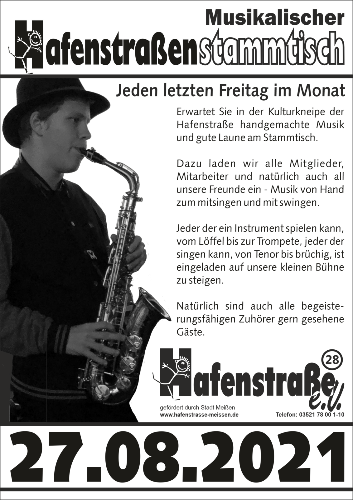 Jeden letzten Freitag im Monat erwartet Sie in der Kulturkneipe des “Hafenstraße” e.V. handgemachte Musik und gute Laune am Stammtisch.