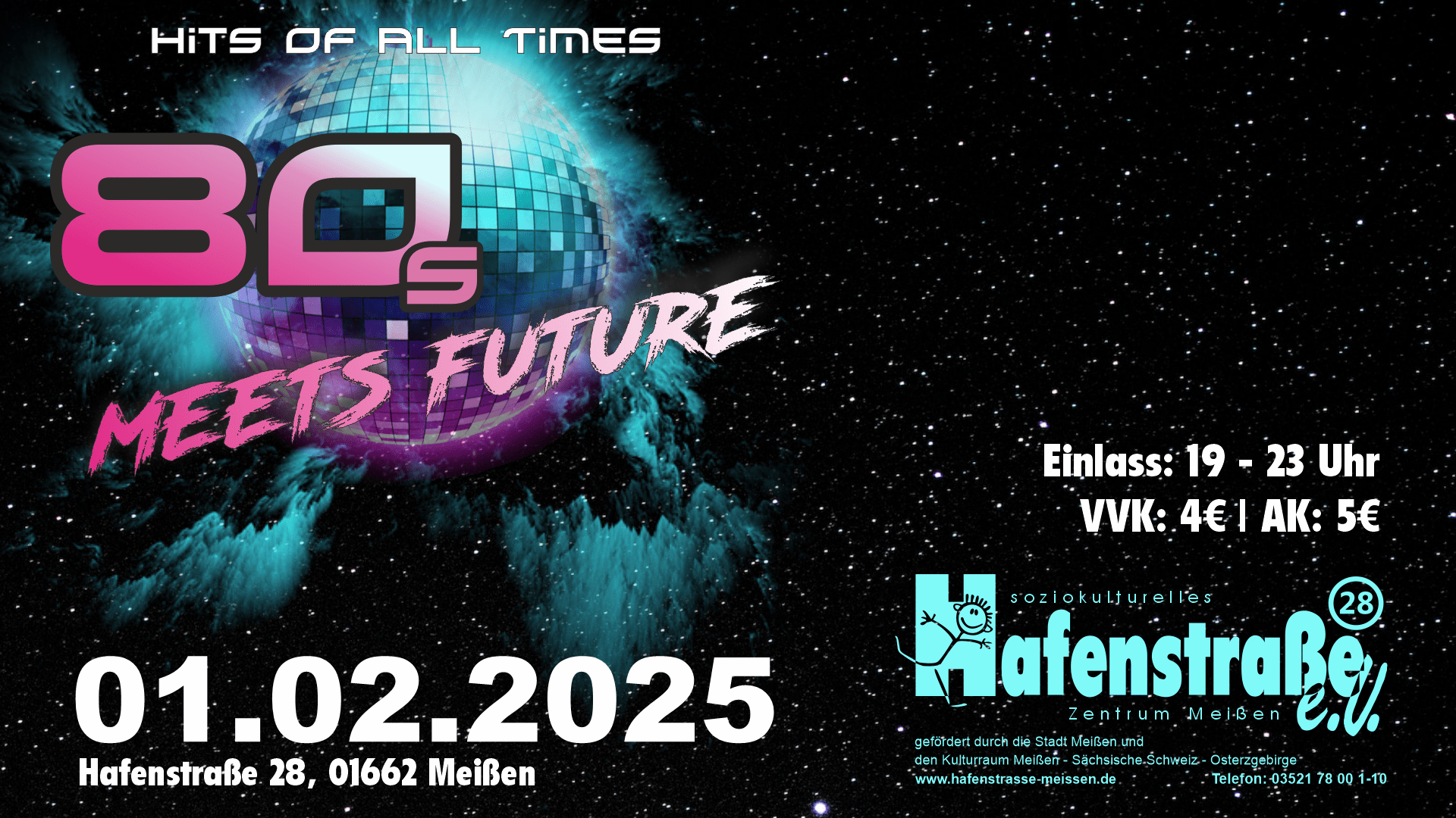 Die größte Achtziger-Jahre-Party in Meißen ist wieder am Start.Ihr seid wieder zum tanzen eingeladen, sowie die alten und neuen Hits zu hören und alte Freunde zu treffen.