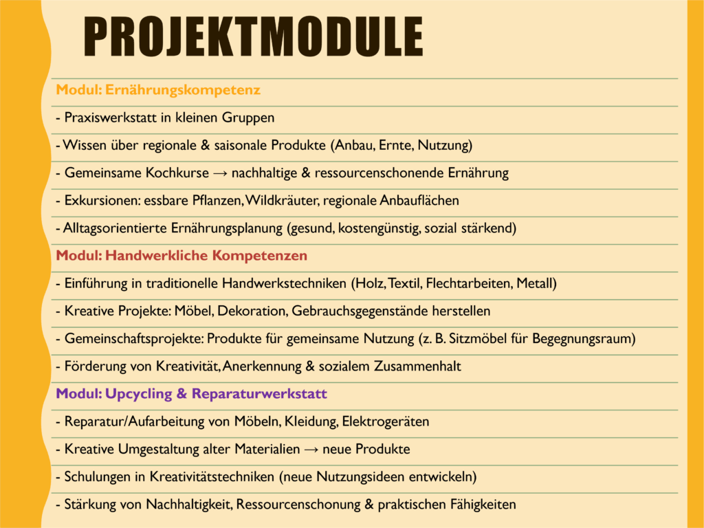 Unsere drei Projektmodule finden Sie weiter unten. Gerne können weitere Themen dazukommen. Bringen Sie sich gerne ein!