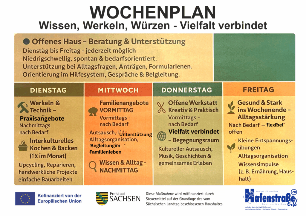 Unser Projekt „Wissen – Werkeln – Würzen“ macht den Alltag leichter und bunter. Es begleitet Sie durch praktische Angebote, spannende Begegnungen und individuelle Unterstützung.